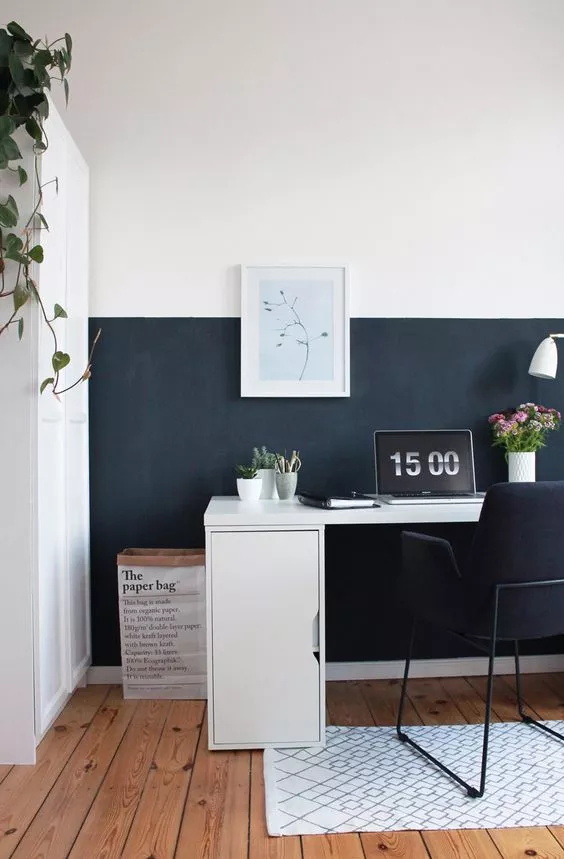 雙色墻面的出現(xiàn)并不是純粹為了讓空間變得更加美觀有趣味,它也是一種設(shè)計(jì)方式,并且還可以搭配讓家具變得更加有設(shè)計(jì)感。