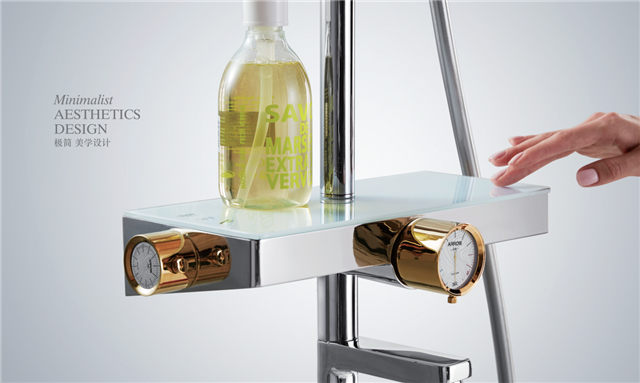 ??一般的花灑通常是通過(guò)左右轉(zhuǎn)動(dòng)調(diào)溫手柄來(lái)調(diào)節(jié)水溫,稍微有一點(diǎn)偏差,就可能凍著或燙傷自己。箭牌恒溫花灑鎏金歲月的調(diào)溫手輪則運(yùn)用齒輪傳動(dòng)比,每一次調(diào)節(jié)都精準(zhǔn)到位,通過(guò)可視溫度盤的觀察,調(diào)節(jié)溫度時(shí)也能對(duì)水溫的變化作出預(yù)判。箭牌恒溫花灑的記憶金屬推動(dòng)陶瓷閥芯來(lái)調(diào)節(jié)冷熱水的出水量,使水溫恒定。恒溫是衛(wèi)浴產(chǎn)品的流行趨勢(shì),它帶來(lái)的良好體驗(yàn)不必贅述,體驗(yàn)過(guò)一次就會(huì)念念不忘。
