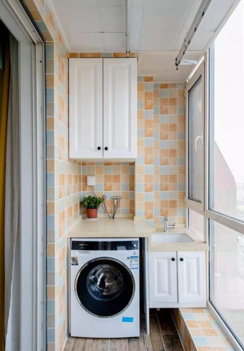 功能性的生活陽(yáng)臺(tái)預(yù)留一個(gè)開(kāi)關(guān)用來(lái)做照明,設(shè)置一個(gè)五孔插座供洗衣機(jī)使用。