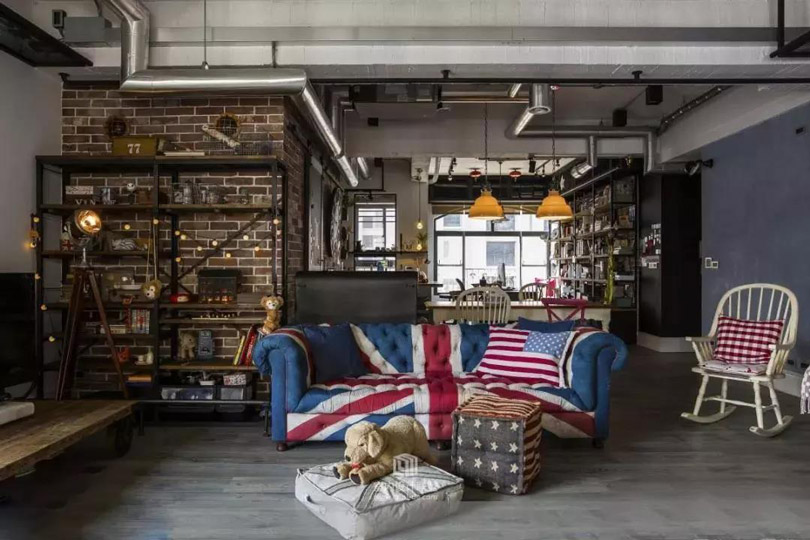 工業(yè)復(fù)古風(fēng)的標(biāo)配,把管線、橫梁、空調(diào)設(shè)備等都暴露出來,讓這些縱橫交錯的粗獷線條賦予空間最不羈的靈魂。