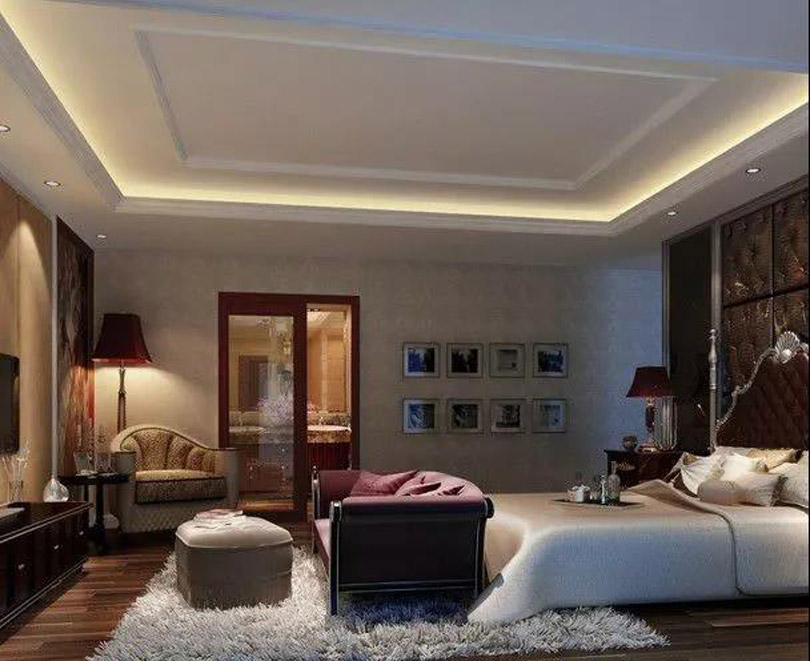 這類吊頂多數(shù)采用純白色的石膏線在天花板勾勒出造型,或者用自帶造型、花紋的成品石膏線來完成墻面到房頂?shù)淖匀贿^渡,避免了視覺上的單一。