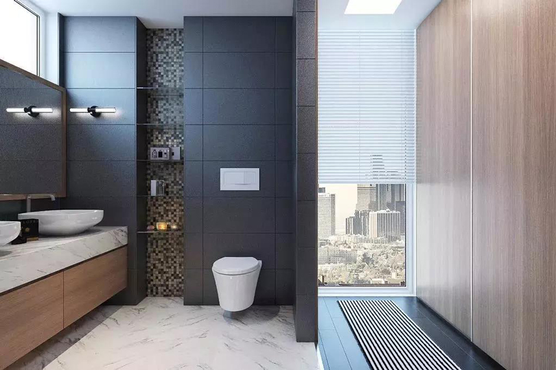 衛生間是下水管道多用區,可以利用玻璃、磚砌等材料進行設計。