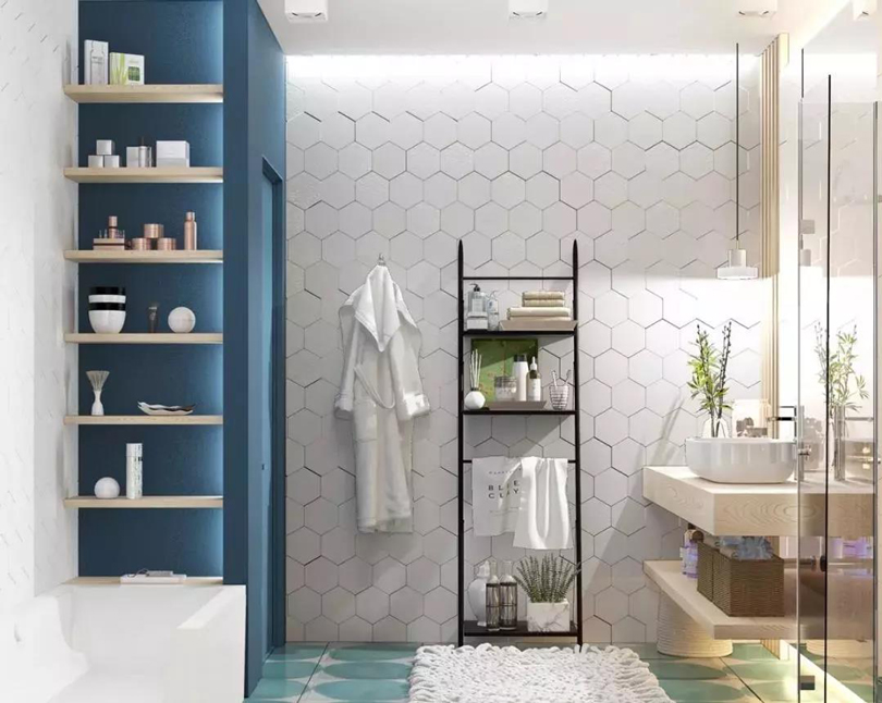 衛生間永遠不會是規規矩矩的方形,有時是因為管道,有時干脆連墻壁都不方正,那么這種因不規則而出現的夾縫位置,就可以做成壁龕來避免空間的浪費。