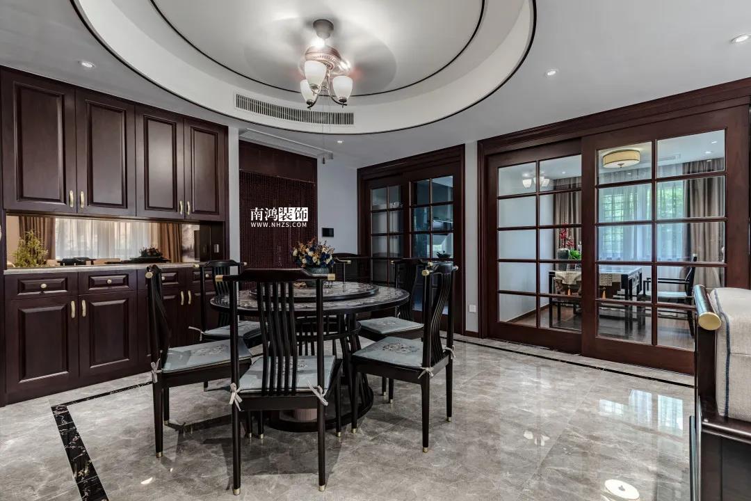 戶 型 圖 設計說明: 敲掉原戶型上多余的墻,使整個空間視野上變得更加開闊,動線更加分明,并將多余的設備平臺包進來提升了空間利用率。 客 廳 客廳提煉了傳統中式風格的經典元素,如方正的家具、吊頂,繪有山水的背景墻,實木的材質等,營造出返璞歸真的生活質感。 沙發米色的布料溫潤而舒適,背景墻、吊頂的線條裝飾顯出嚴謹而有序的空間個性。 客廳望向餐廳與玄關的視角,干凈澄明,視野一覽無余。 餐 廳 餐廳與廚房、書房相鄰,上方設計圓頂,上下呼應,寓意著“團圓”,同時餐邊柜做寬以增加儲藏量。 廚 房 廚房呈U型布局,面積雖不大但功能齊全,深咖的櫥柜低調而莊重。 臥 室 主臥,形式簡約,金色花卉的壁紙在這片濃重的風格中透出清新典雅之色。飄窗改造成收納式,臺下做了幾個抽屜,于細節處現巧思。 ▲小孩房 ▲客臥 小孩房與客臥設計,風格上如出一轍,低飽和的基調搭配穩重實木材質,通過光感與線條營造舒心的就寢環境。 書 房 走進書房,古色古香的氣質鋪面而來,嫩紅、明黃的花朵與綠植交錯點綴,呈現出雅致的一方藝術空間。 衛 生 間 衛生間,墻地統一的深灰瓷磚簡約而美觀,鏡柜的設計增加儲物,提升生活舒適度。 | 地址:玉蘭苑 | 戶型:四室兩廳 | 面積:140㎡ | 風格:中式 | 設計施工:浙江南鴻裝飾