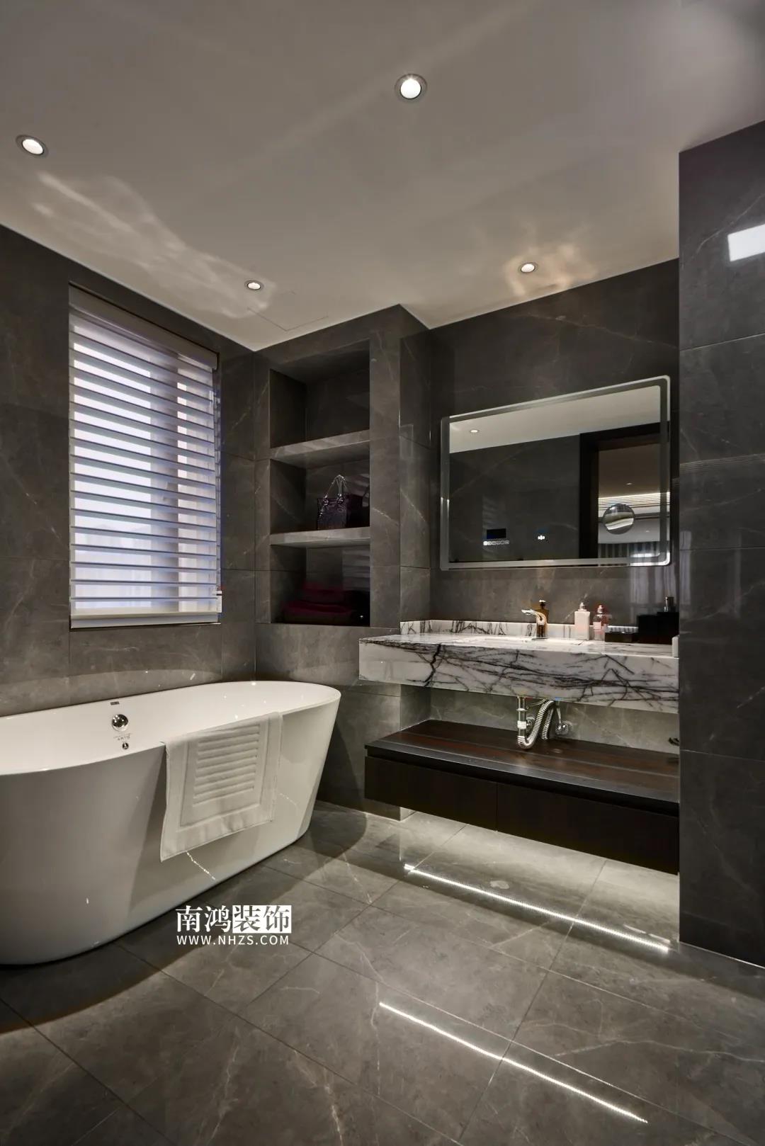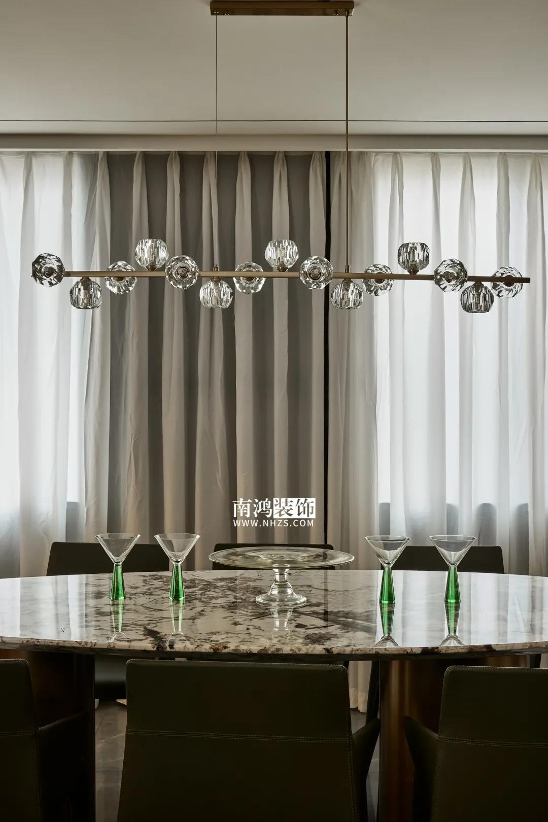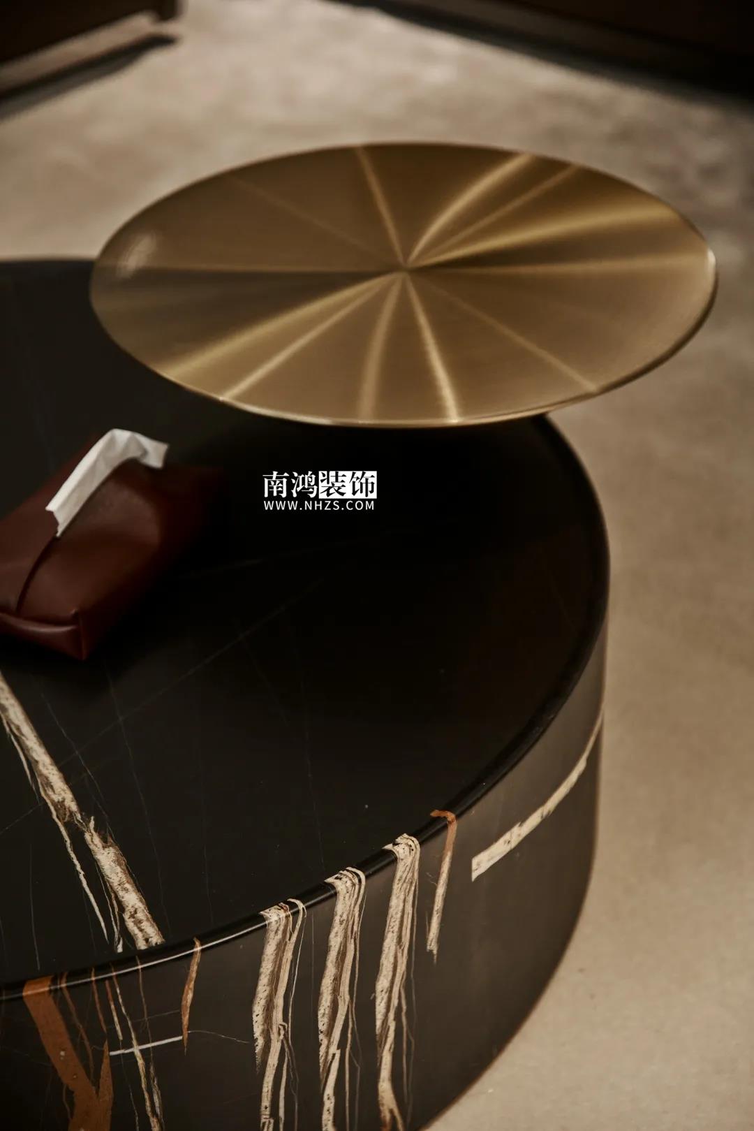 【項目·信息】 地址 / 華瑞晴廬 戶型 / 三室兩廳 面積 / 200㎡ 風格 / 現代極簡 設計施工 / 浙江南鴻裝飾 01. 客戶需求 本案的男業主是位個體戶老板,事業有成,性格熱情開朗,十分好客,由于夫妻二人目前沒有小孩,父母也是偶爾來住,對房間的需求并不大,因此戶型從原來的5房3衛改為了3房2衛,并盡可能擴大客餐廚的面積,來滿足業主的會客需求。 02. 裝飾亮點 “人內在的細膩與深切的情感,需要與之對等的空間來承載。灰與黑,看似簡單平靜,卻蘊含著無窮的魅力。” 屋主偏愛深色系,因此設計師精細地調配深色在空間中的比例,運用護墻板、大理石、皮革等質感材質,借助燈光效果,為他們打造了這個頗具神秘感和高級感的暗色空間。 03. 戶型分析 & Design Drawing 1、進門靠墻增加一組鞋柜以提升玄關收納。 2、原戶型中的兩個房間合并成餐廳區域,并與客廳打通,使人一進屋便能感受到公空間的開敞氣勢。 3、原有的一個衛生間改造成衣帽間,將主臥打造成一個包含休閑區區、寬敞主衛、衣帽間在內的豪華套間。 04. 設計落地 很多人酷愛深色 與其說天性愛低調 不如說是深色所散發出的靜謐氣質 恰好與渴求安寧的內心產生了共鳴 灰與黑打造的客廳 洋溢著高級感與神秘氣質 豐富的紋理、材質變化 在空間內形成一種微妙的和諧 熱情張揚的紅 與深沉神秘的黑 兩相對立的色彩語言 帶來十足的視覺沖擊力 & Dining Hall 黑色的皮革餐椅 搭配高顏值的大理石餐桌 打造精致的多人用餐環境 餐廳做整面酒柜 置入暖黃燈帶 既是酒水的完美收納 又是一處身份品味的象征 玄關往客廳的過渡區域 安置精心打造的吧臺 成為過道口的一處個性風景 也是日常的簡餐區 廚房擁有標準的U形操作臺 儲物充足,動線流暢 深色櫥柜與臺面 完美塑造一體式空間感 主臥承襲整體的暗色風格 深沉的灰黑色打底 傳達平和寧靜的空間情緒 豪華的主臥套房 包含休閑區、主衛與衣帽間 擯棄了所有多余的裝飾 只保留每一件必需的家具 獨立衣帽間設計 黑色柜體內藏有燈帶 酷雅有型 純粹的黑構建理性的質感 透過白色紗簾進入室內的日光 讓客臥空間 簡潔中帶上了變化 次臥床尾 安排書桌椅與書架 灰色的墻布 排除一切冗余 力求沉穩大氣 經過戶型調整 主衛內部更顯寬敞 浴缸與淋浴區分居兩側 功能區的豐滿 是給生活最大的舒適 次衛風格與主衛相似 石紋瓷磚搭配木質臺盆柜 淋浴區內設置壁龕 視覺舒適,實用性強