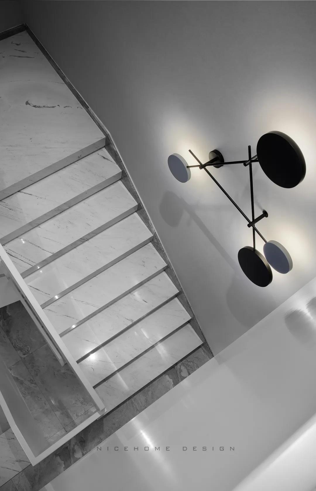 一層原結(jié)構(gòu)樓梯位置不合理,處于入戶正對口,現(xiàn)移動至西側(cè)以規(guī)避缺陷。客廳主沙發(fā)后做一面凌空隔斷墻,增加視覺層次與進門后的儀式感。