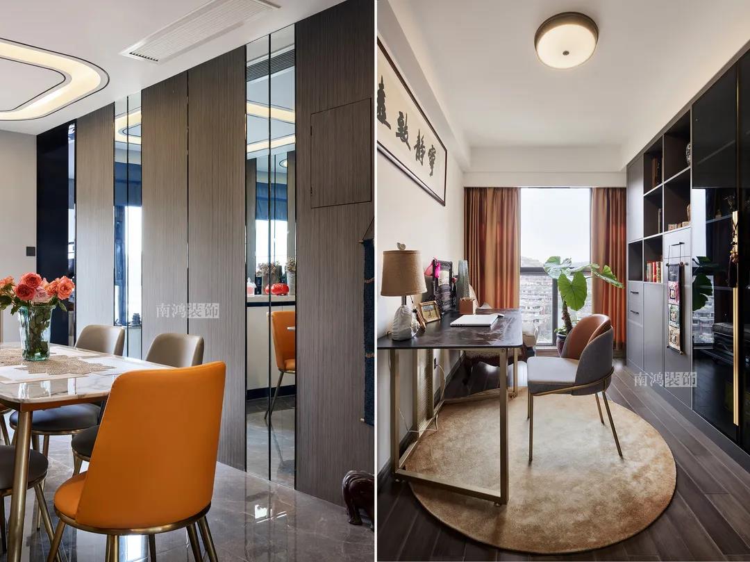 華瑞晴廬本身是200方的大平層戶型,但廚、衛(wèi)、餐、臥房都偏小,因此設(shè)計(jì)師將空間進(jìn)行整合規(guī)劃,盡量放大客餐廚公區(qū)域面積,滿足客戶的日常交際需求。