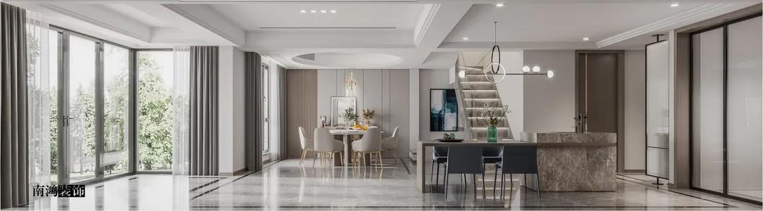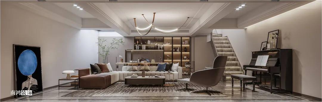遠(yuǎn)洋雁歸里是我們王冬萍老師的一套現(xiàn)代輕奢風(fēng)格的別墅作品。輕奢風(fēng)是一種格外優(yōu)雅的生活基調(diào),也是居者面對(duì)喧囂世界時(shí)寧?kù)o從容生活態(tài)度的一種外現(xiàn),高貴又有質(zhì)感。